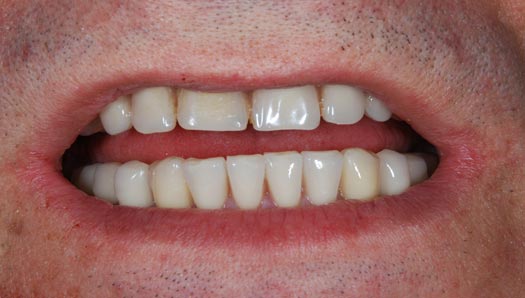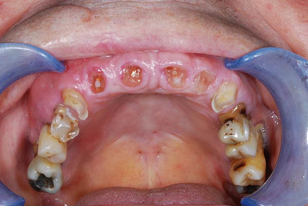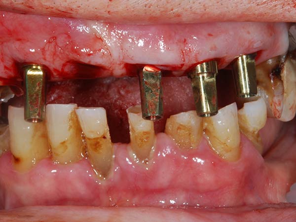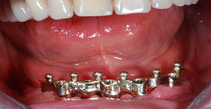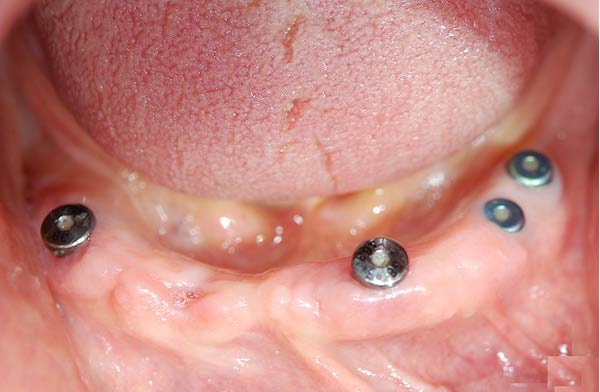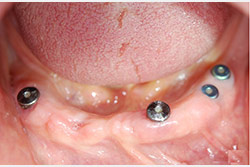 sono stati sostituiti da 10 impianti, cioè protesi radicolari endo-ossee che sostengono le protesi fisse superiore ed inferiore.