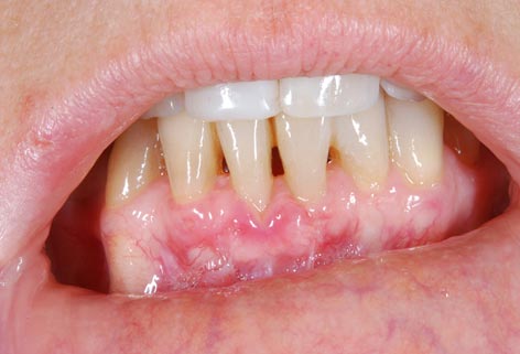 I denti irrecuperabili dell'arcata superiore ed inferiore del paziente di anni 65