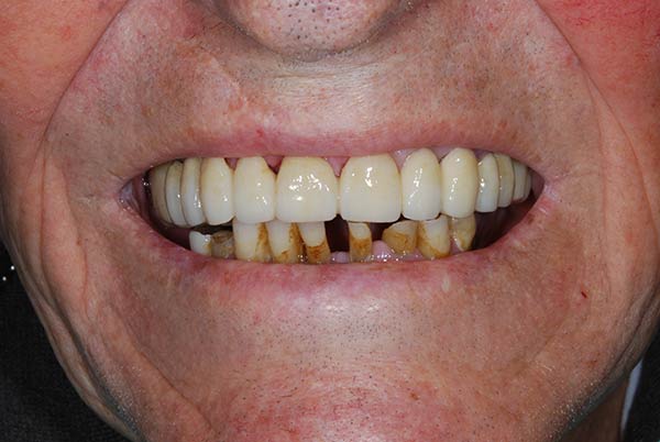 Con protesi fissa superiore e protesi fissa inferiore